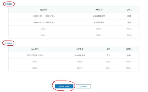 (3)在“修改个人信息”界面中核对本人信息是否正确(不可更改部分),完善个人信息(红色圈起的内容为必填内容),填写完毕“保存个人信息”。(见图3)